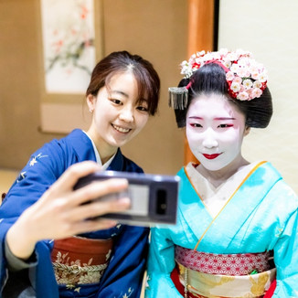 京都でもなかなか会うことが出来ない憧れの舞妓さん。『会いたい』『喋ってみたい』『一緒に写真を撮りたい』『舞を見てみたい』『千社札が欲しい』舞妓さんとの夢が叶えられる特別なイベントです。落ち着いた雰囲気の京町家の店内で、ゆったりと鑑賞できます。お抹茶とお菓子のサービスもご用意しました。優雅なひと時をお過ごし下さい。
